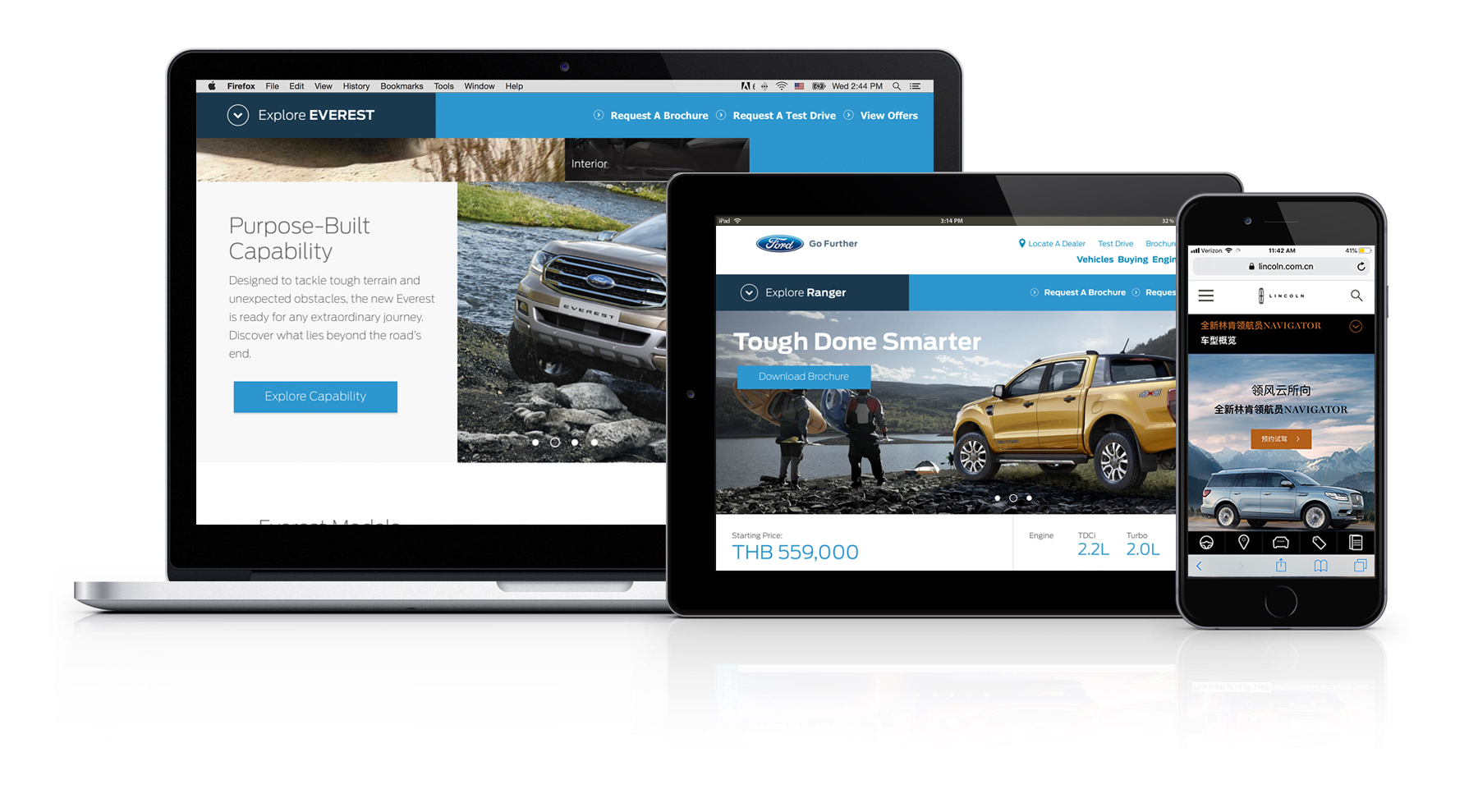 Products: All vehicles available in the Asia-Pacific and China markets, particularly the Everest/Endeavour SUV, Ranger truck, and Navigator luxury SUV.