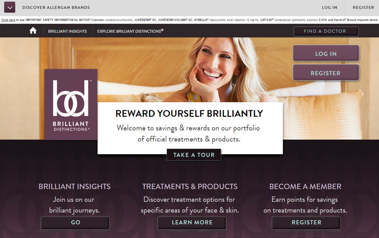 Our client wanted to elevate their existing CRM program, Brilliant Distinctions, to compete with chic, high end aesthetic heavyweights such as La Mer and SK-II. While the portfolio includes some of the biggest brands that were first to market (Botox, Juvederm, and Latisse), consumers no longer viewed the products with the same initial reverence.